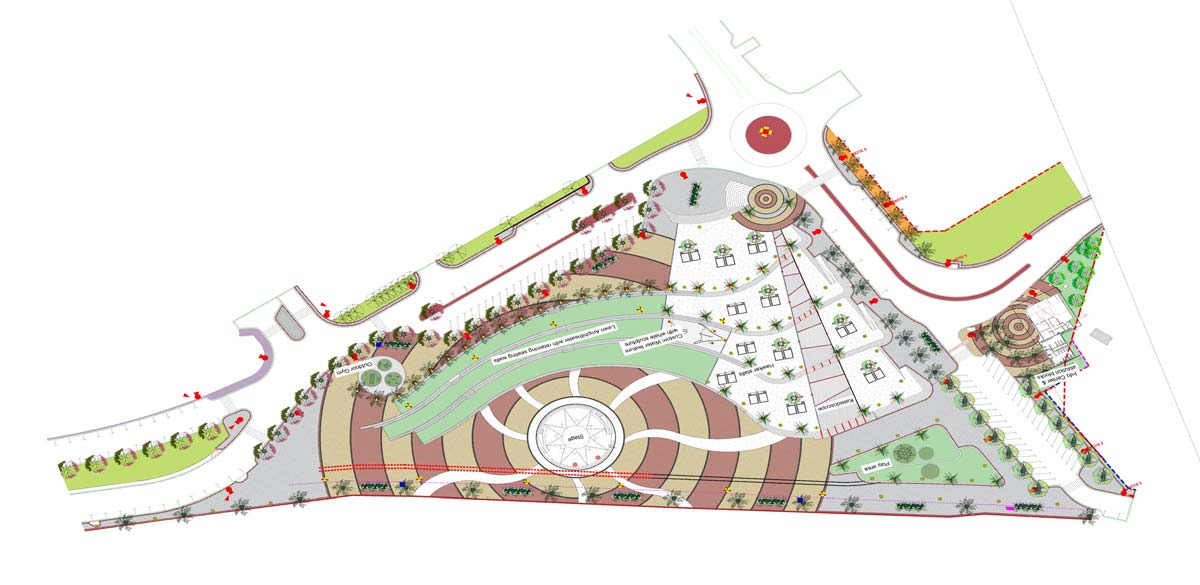 The project was designed at a macro scale to form a comprehensive picture from above and also to include many exciting elements within. The patterning of the retaining structures of the amphitheatre reflect the waves and ‘hold’ the entire precinct together. The stage reflects the sun and the hawker stall zone is almost like a ships bow piercing the ocean.